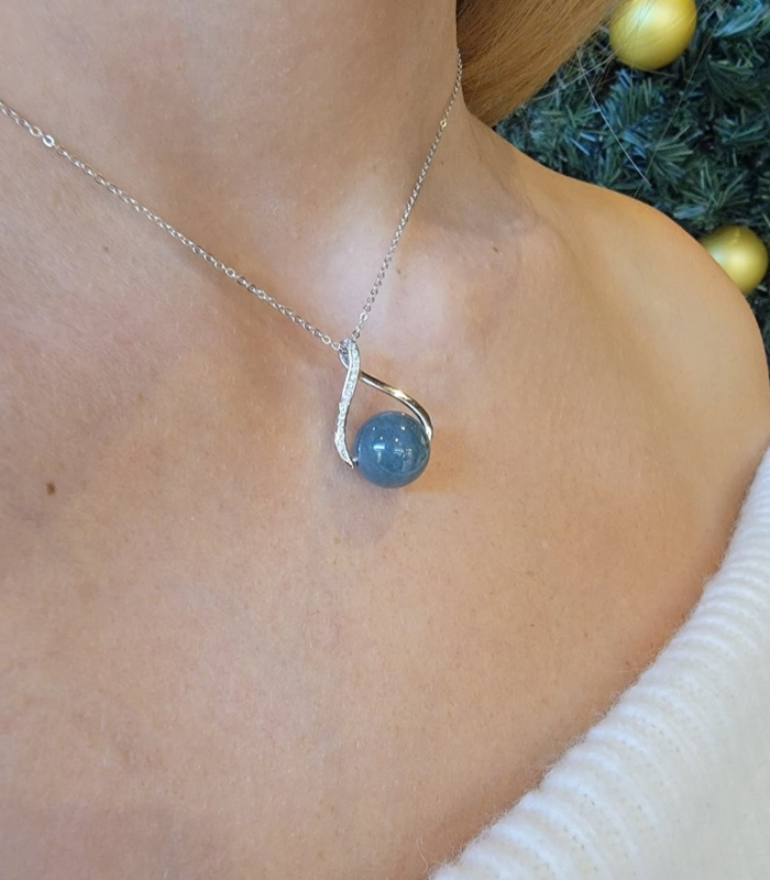Blue Jade Necklace Elegant Round Pendant – Sterling Silver 925 Chain, Dainty and Minimalist Jewelry